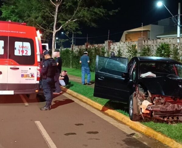 Na noite desta sexta‑feira (17), um grave acidente ocorreu na Av. Dom Redovino, em frente a um condomínio de alto padrão na cidade de Dourados. O condutor de 18 anos perdeu o controle do veículo no trecho da rotatória, colidiu com o meio‑fio e, em seguida, bateu contra o muro do condomínio.