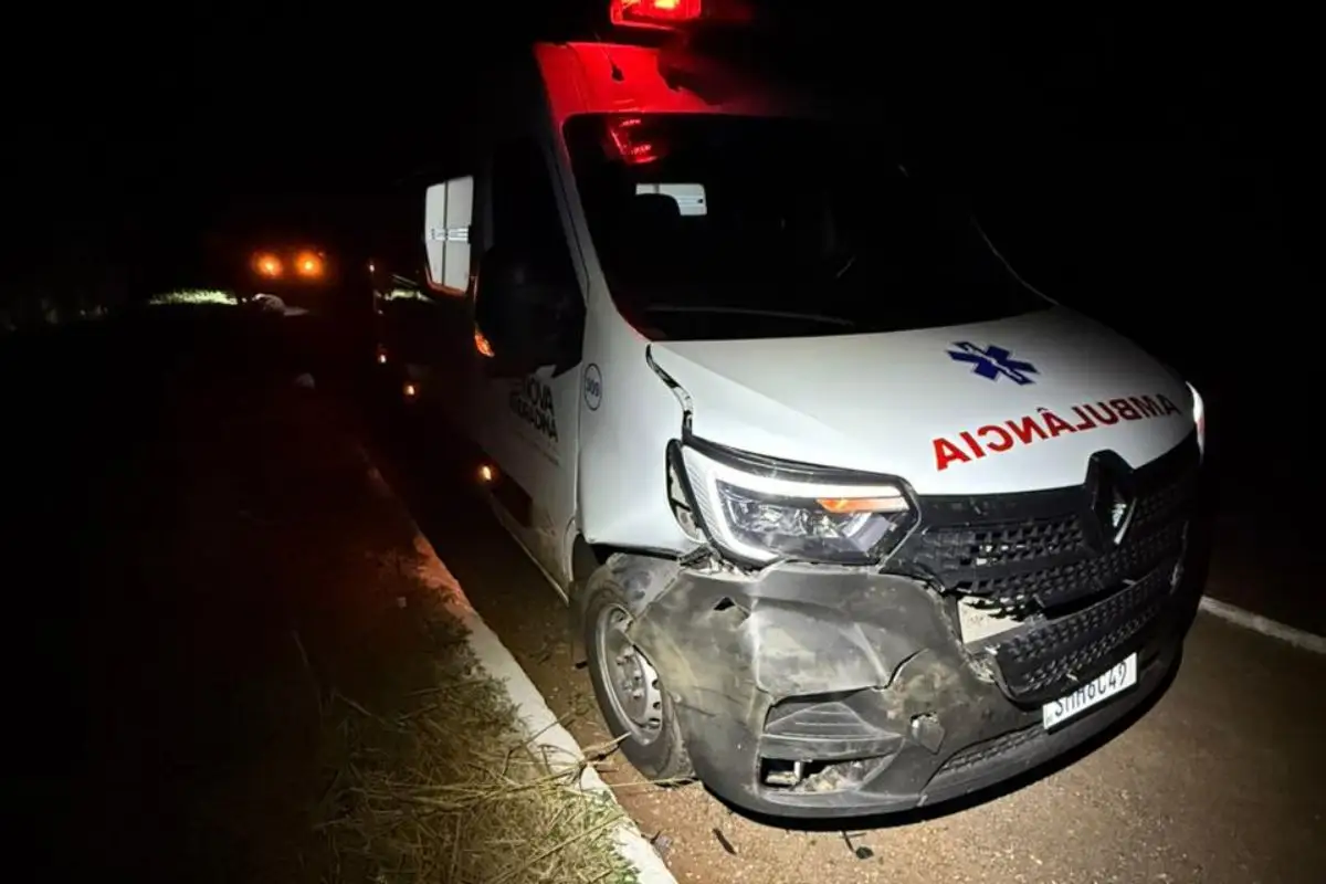 Uma ambulância da Prefeitura de Nova Andradina atropelou uma anta na madrugada deste domingo (29) na rodovia MS-134, enquanto transportava uma criança de cinco anos e sua mãe. O animal morreu no local.