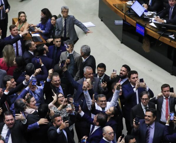 “Consideramos o que está acontecendo aqui hoje um ato de sabotagem contra o Brasil. Da parte do relator, houve toda a paciência para discutir um acordo de mérito, mas o que ficou claro para a gente é que aqui ficou claro a vontade de impor uma derrota politica para o Brasil, não para o presidente Lula”, afirmou Lindbergh durante coletiva no final da tarde no Salão Verde da Câmara.