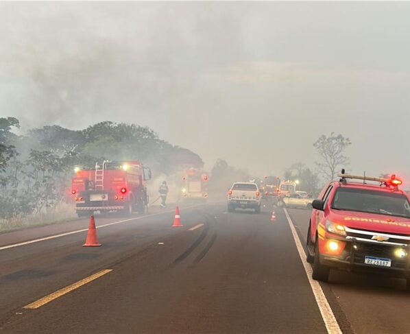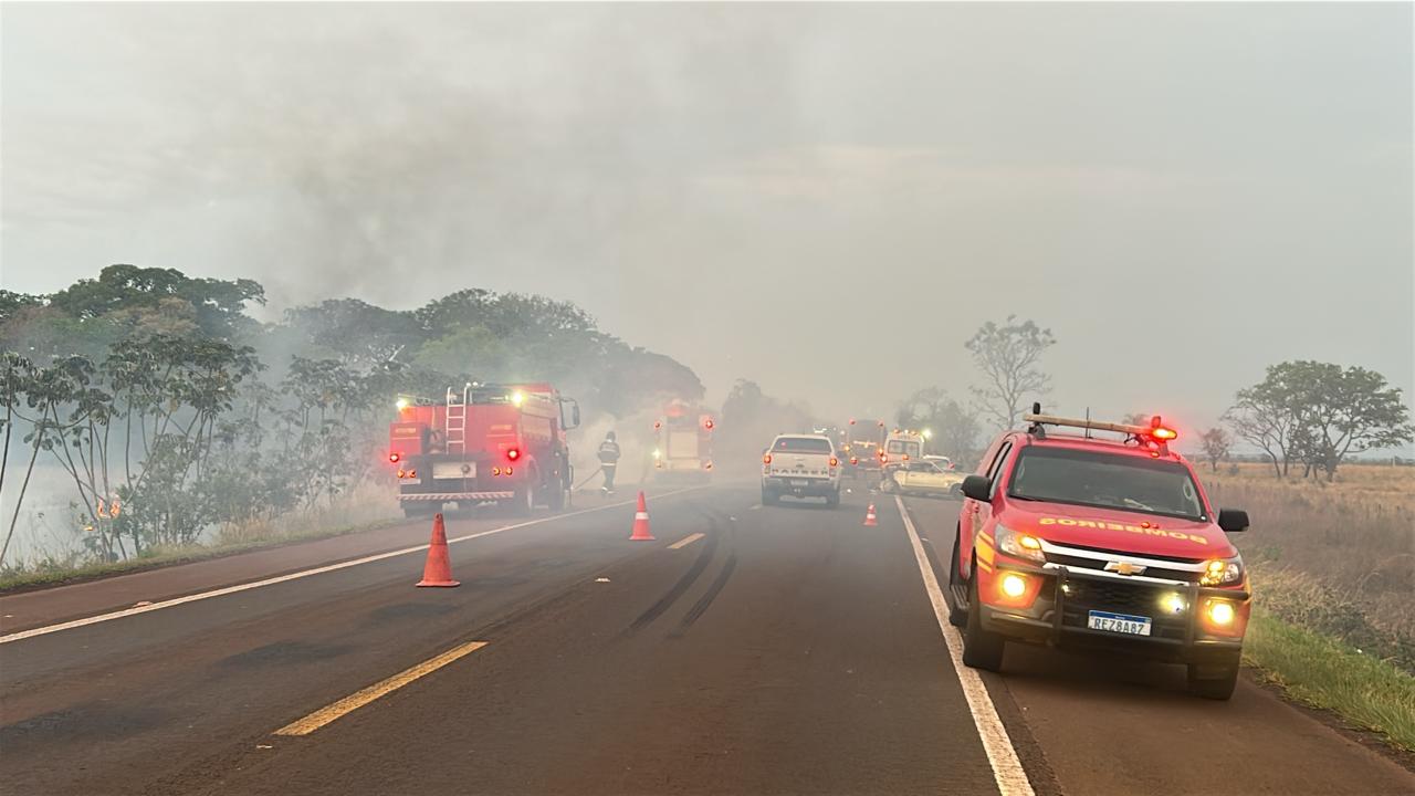 Segundo informações do Corpo de Bombeiros, a corporação foi acionada por volta das 4h50. Ao chegarem ao trecho indicado, os militares encontraram um carro tombado às margens da rodovia, já destruído pelo fogo. As chamas também atingiram parte da vegetação próxima à pista.