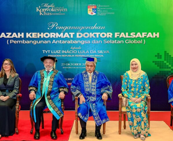 O presidente Luiz Inácio Lula da Silva voltou a criticar a continuidade da guerra em Gaza e a resistência mundial em criar um Estado palestino. A declaração foi dada neste sábado (25), durante a cerimônia de recebimento do título de doutor Honoris Causa em Filosofia e Desenvolvimento Internacional do Sul Global, concedido pela Universidade Nacional da Malásia, em Putrajaya, capital administrativa da Malásia.
