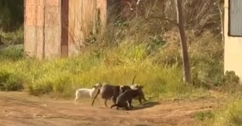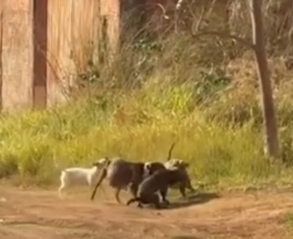 Nas imagens, o pitbull aparece mordendo o pescoço do outro cão e arrastando-o até um terreno baldio. Um motorista que passava pelo local tentou intervir, jogando o carro em direção ao animal, mas não conseguiu fazê-lo soltar a vítima.