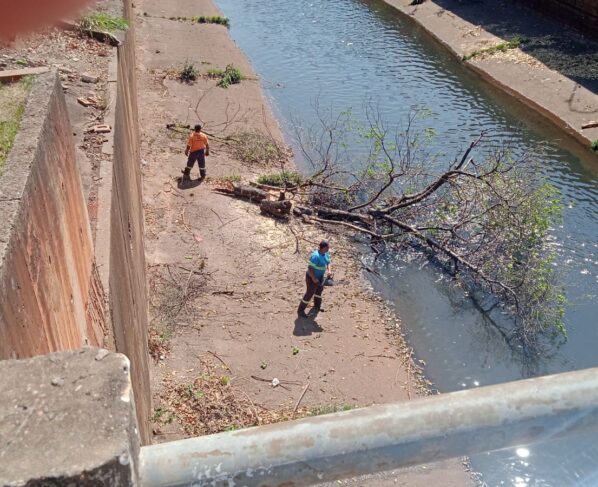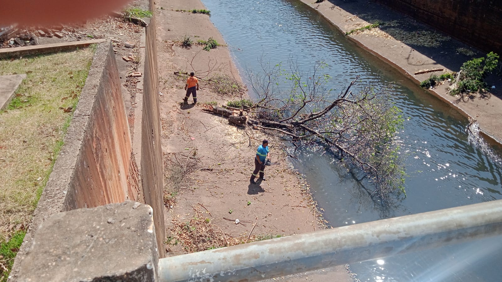 Com a proximidade do período de chuvas, a Sisep tem reforçado as ações preventivas, como a limpeza e desobstrução de bocas de lobo e a retirada de árvores no leito do Córrego Segredo, que corta a cidade no sentido Norte-Sul. Na Avenida Ernesto Geisel, estão sendo realizados serviços de roçada, poda e retirada de resíduos, como galhos acumulados no canal do córrego.