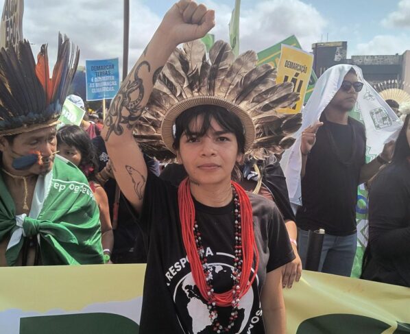 A ativista do povo Paiter Suruí, cujos territórios ficam nos estados de Rondônia e Mato Grosso, celebrou a participação dos movimentos sociais e dos povos tradicionais nas ruas durante a marcha deste sábado.