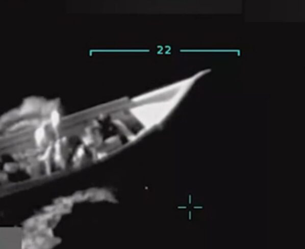 Mais tarde, ele compartilhou um vídeo em sua plataforma Truth Social que parecia mostrar imagens de drones aéreos de uma lancha no mar explodindo e depois pegando fogo.